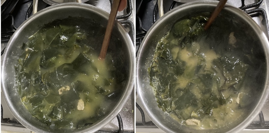 해안가에 사시는 분들은 생미역으로 후다닥 맛나게 끓여 드시겠지만, 내륙에 사시는 분들은 일반적으로 말린 미역을 사용하시죠. 그런데 시간이 촉박해서 너무 조금불려서 사용하면 맛이 잘 우러나지 않는 미역도 있더라고요. 그럴 땐 오래 불리면 더 부드러워집니다. (전 날 저녁에 불려두기도..)