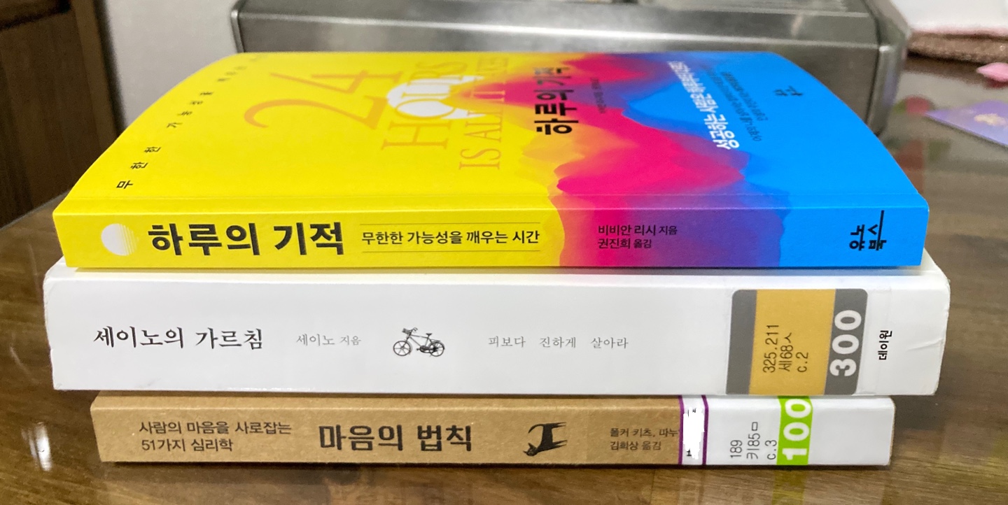 [세이노의 가르침]은 저자의 경험이 재밌어서 펼쳐볼 때마다 읽어볼 만 해요. 한 번에 다 읽으라하면 저 두꺼운 걸 누가..ㅎㅎ