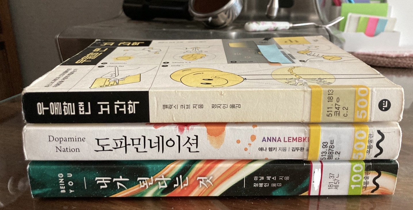 운동을 해야 하는 걸 알면서도 게으름 피우는 저에게 동기부여를 시키고자 고른 책입니다.유쾌한 운동의 뇌과학_2020마누일라 마케도니아뇌는 달리고 싶다_2019 안데르센 한센걷기의 세계_2022 셰