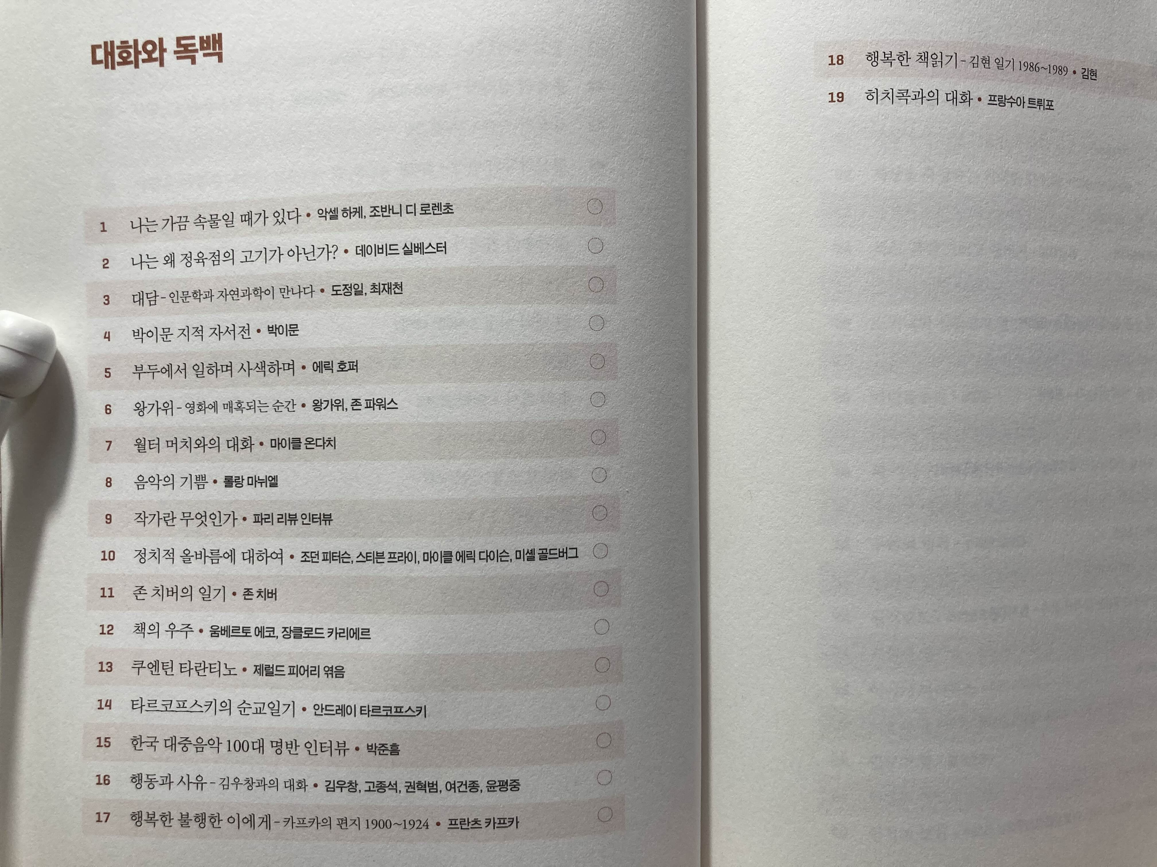 저도 예전에는 밑줄이나 메모를 잘 안 했고 하더라도 나중에 지울 수 있는 연필만 썼는데 지금은 안 그래요. 책을 깨끗하게 읽는 것이 결코 좋은 독서가 아니라는 걸 알게 되었기 때문입니다. 저는 책이란, 늘 가까이 두고 언제나 펴보고 아끼지 않고 읽고 그러다가 읽기 싫으면 집어던져도 된다고 생각합니다. 그것이야말로 즐겁게 책 읽기를 할 수 있는 태도라고 믿습니다.