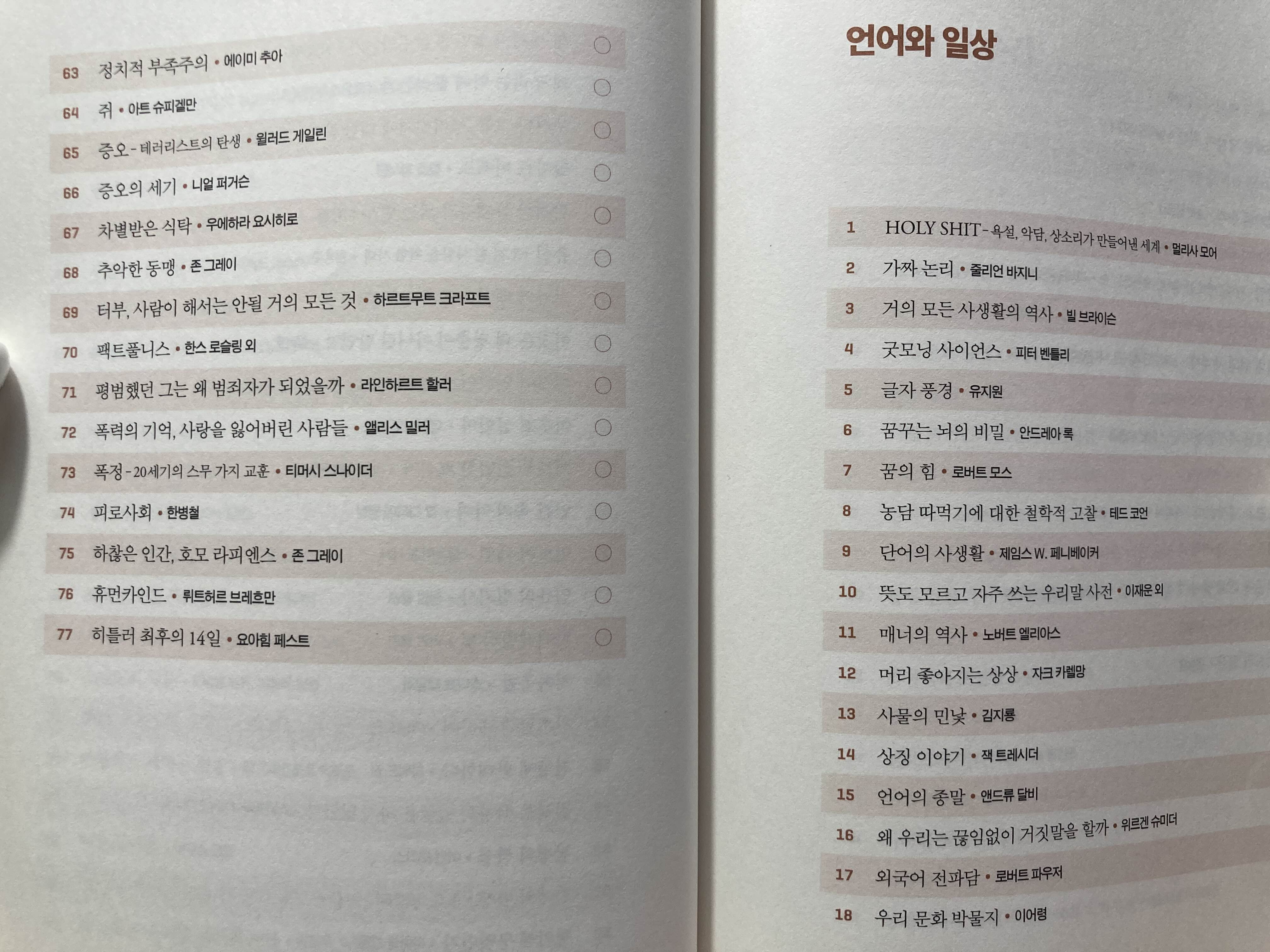 이동진 독서법의 p181~228까지 무려 24장에 걸쳐 책추천목록이 나옵니다. 제목만 쭈욱 훑어보아도 보고 싶은 책들이 수두룩 하네요. 고명환의 독서내공에서도 뒷부분에 책추천목록이 있어요. 요즘 뭐 읽을 만한 거 없나~ 하시는 분들은 이것만 훑어봐도 읽고 싶은 책이 10권 이상 나올 거예요^^ 참고하시기 바랍니다.