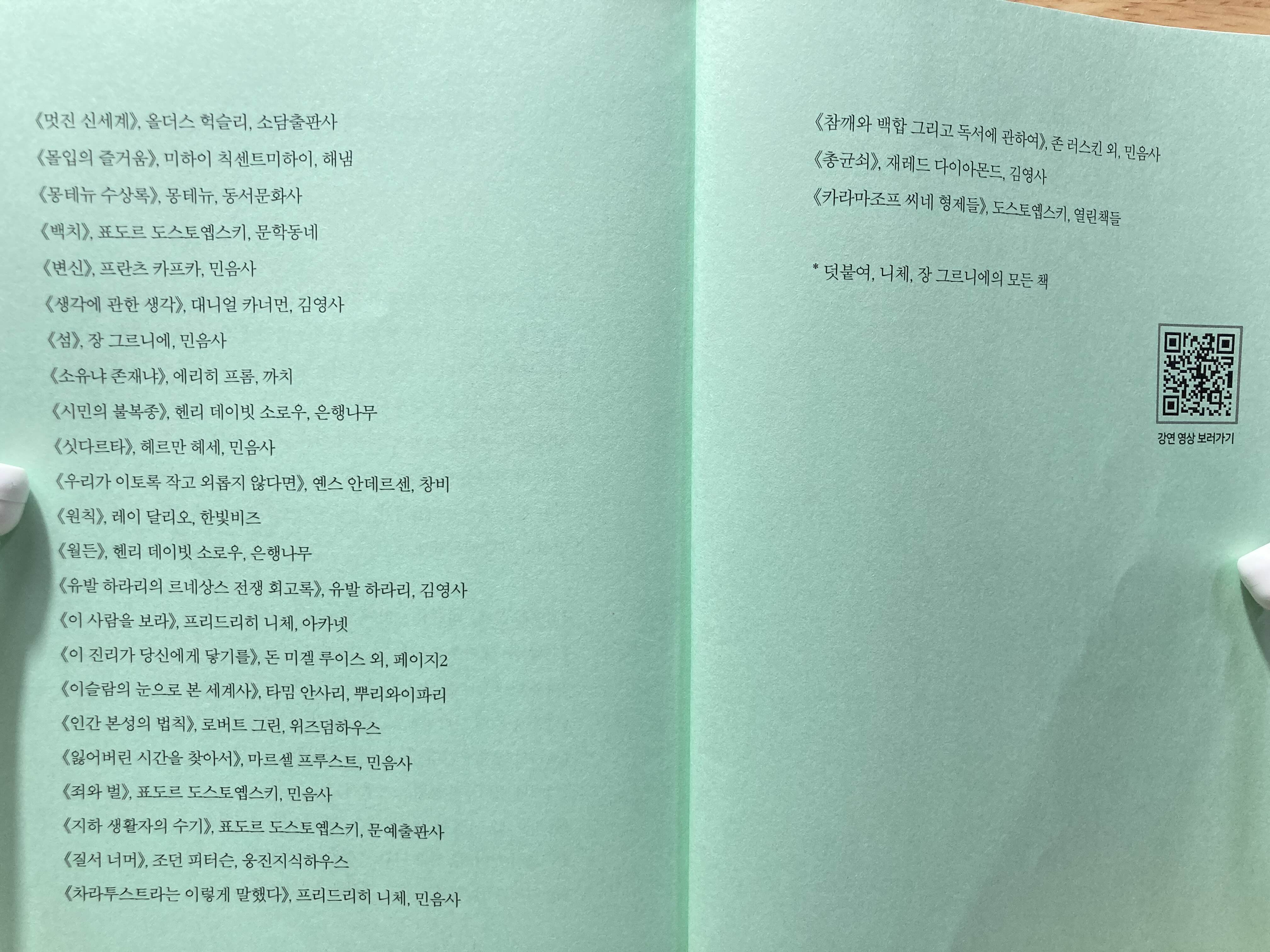 이동진 독서법의 p181~228까지 무려 24장에 걸쳐 책추천목록이 나옵니다. 제목만 쭈욱 훑어보아도 보고 싶은 책들이 수두룩 하네요. 고명환의 독서내공에서도 뒷부분에 책추천목록이 있어요. 요즘 뭐 읽을 만한 거 없나~ 하시는 분들은 이것만 훑어봐도 읽고 싶은 책이 10권 이상 나올 거예요^^ 참고하시기 바랍니다.