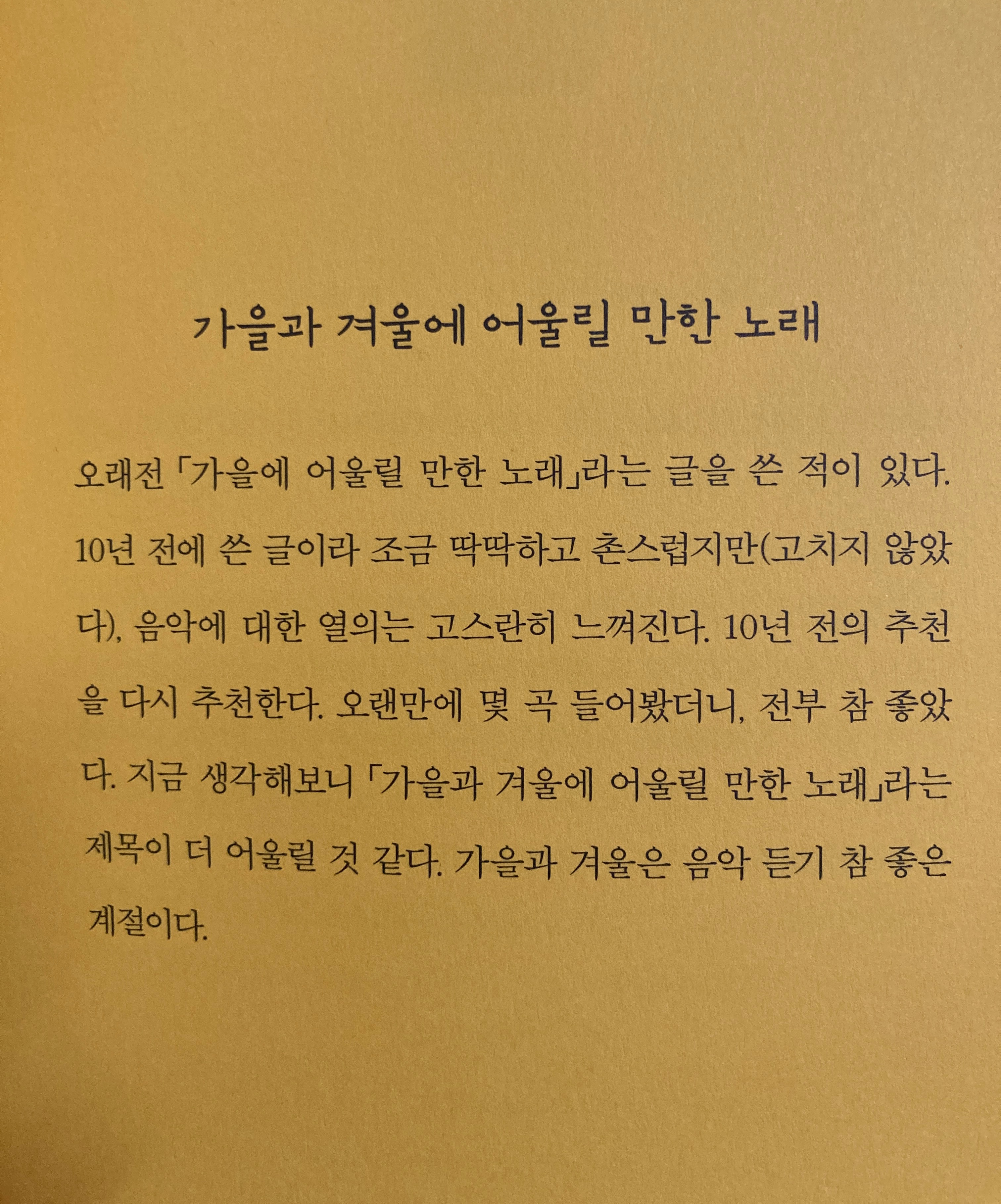 김중혁 산문집에 나오는, 가을과 겨울이 어울릴 만한 노래 모음입니다.