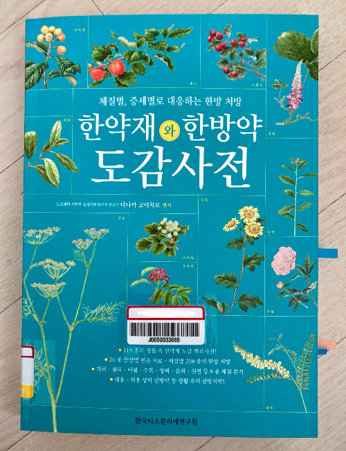 한약재에 관심이 있어 책 두 권을 도서관 상호대차로 빌려왔어요. 오른쪽 책 [한방약리학]은 현대의학적 연구방법으로한약의 작용 기전을 설명하는 책입니다. 전통의학에 현대의학이 결합된 책