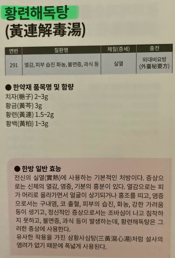 상기 책에 나오는 한방약 처방입니다.