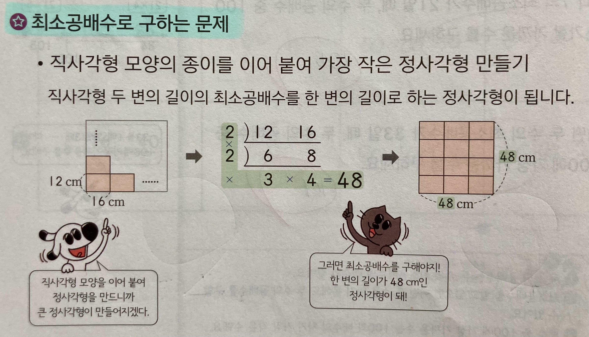 기초적인 최대공약수와 최소공배수는 풀 수 있다는 가정하에, 초등학생에게 하는 대화체로 적어볼게요.