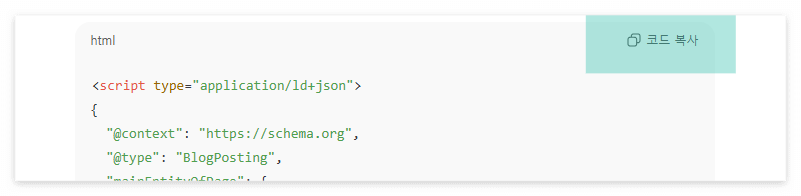 - 거기에 아까 복사한 <script type="application/ld+json"> ... </script> 전체를 그대로 붙여넣기