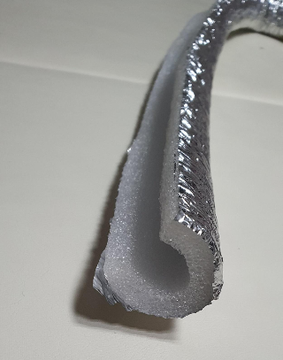 저 틈새를 막을 재료입니다. 파이프 동파 방지용 단열재를 절반 자른 모습입니다.