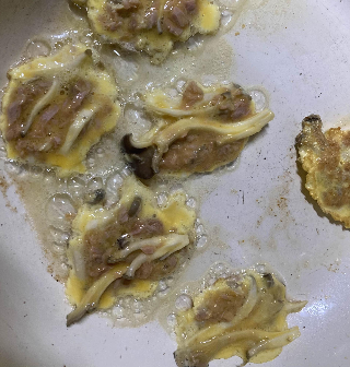 *참치를 너무 많이 넣으면 퍽퍽한 느낌이 드니, 버섯, 계란물과 고루 넣어 부쳐주세요.