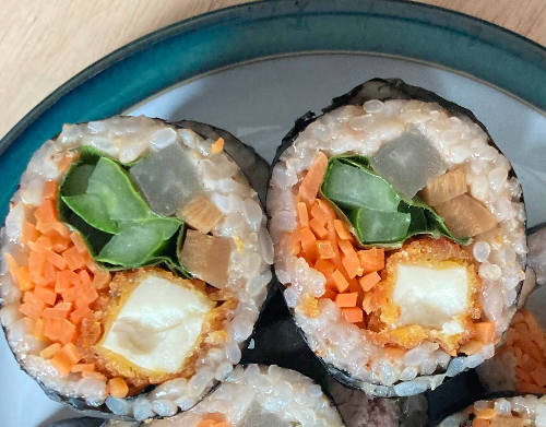 정월대보름에 먹는 나물류에 + 밥 + 참기름 + 소금 + 깨소금으로 밥을 비벼서, 두부튀김을 넣어 김밥을 만들어 보세요. 색다르네요. (취나물, 시래기 등 나물반찬을 송송송 다져서 밥과 비벼주세요)