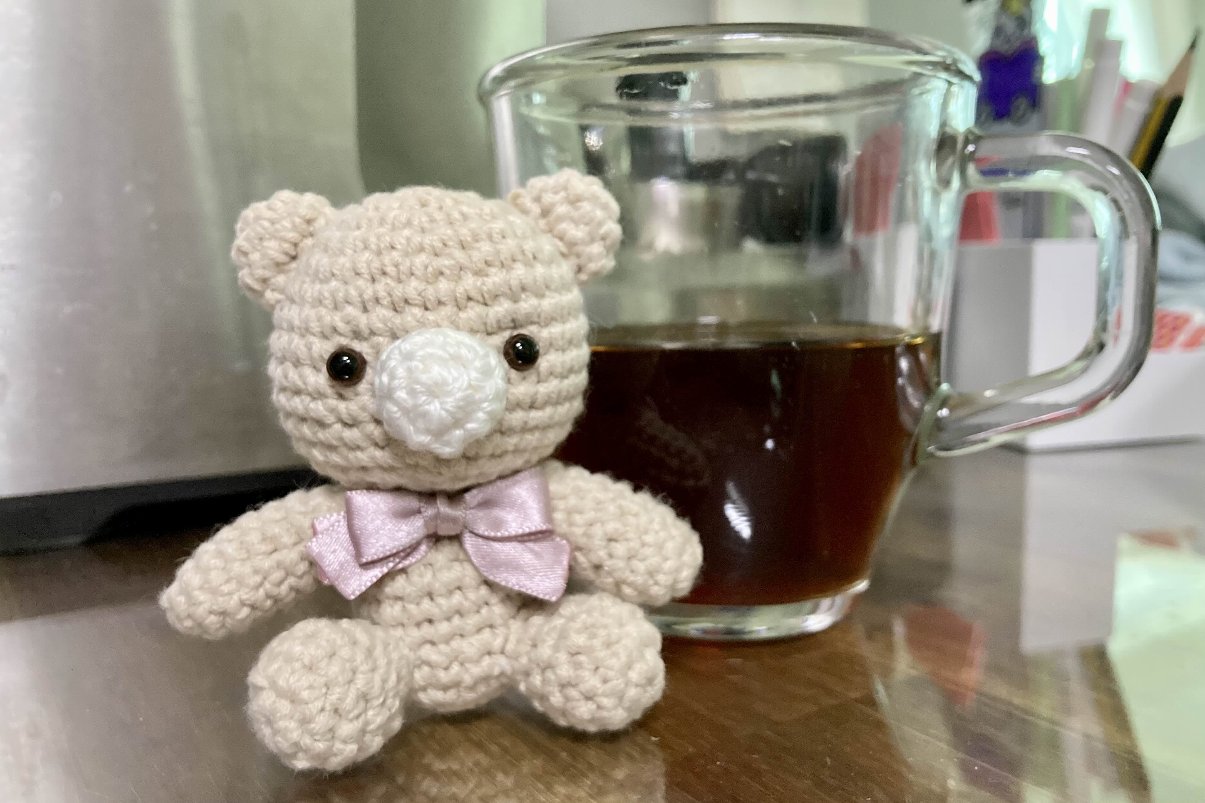 아이가 원하는 곰인형을 코바늘로 떠 보았어요. 어린아이가 뜨기에 작은 소품 뜨기도 재미있네요.