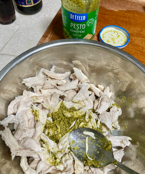 바질페스토에 버무린 닭가슴살으로 든든하게.