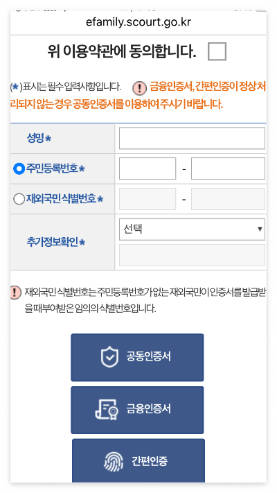 1. 부모 인증 및 자녀 정보를 입력하고,