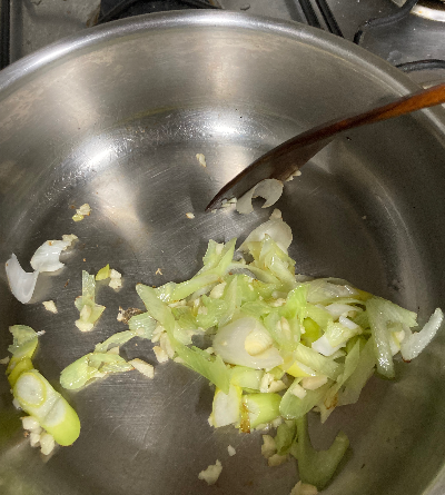 냄비에 기름 살짝 넣고 파마늘 향이 나게 먼저 볶아요.