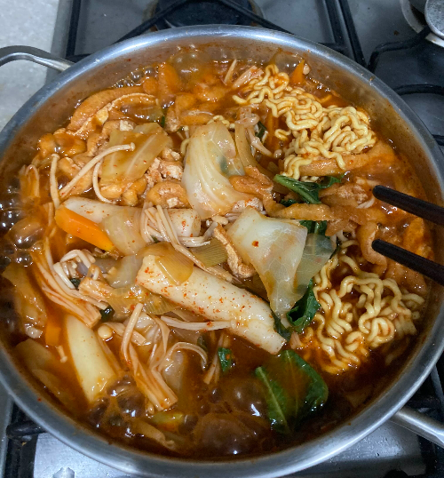 3. 떡과 라면(건면)을 넣고 익으면 끝~
