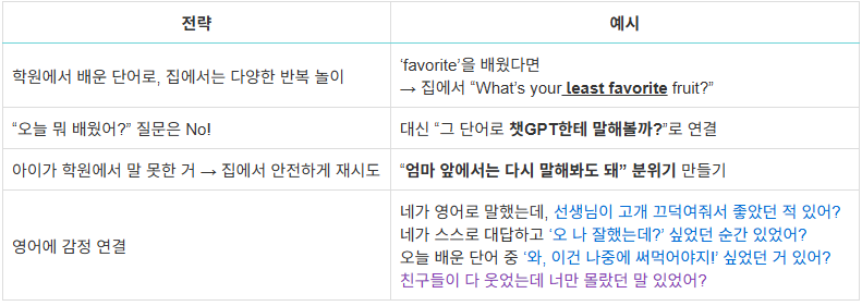 - 부모가 영어책을 함께 읽거나 챗GPT로 학습을 이끌 수 있을 때
