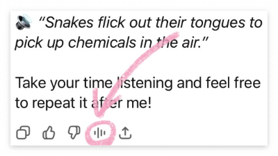 챗gpt의 답변 하단에는 아래와 같은 표시가 있어요. 아래 핑크색 표기 부분에 "텍스트 읽어주기"를 클릭하면 텍스트를 소리내어 들려줍니다. 발음을 익히는 데 유용하죠.