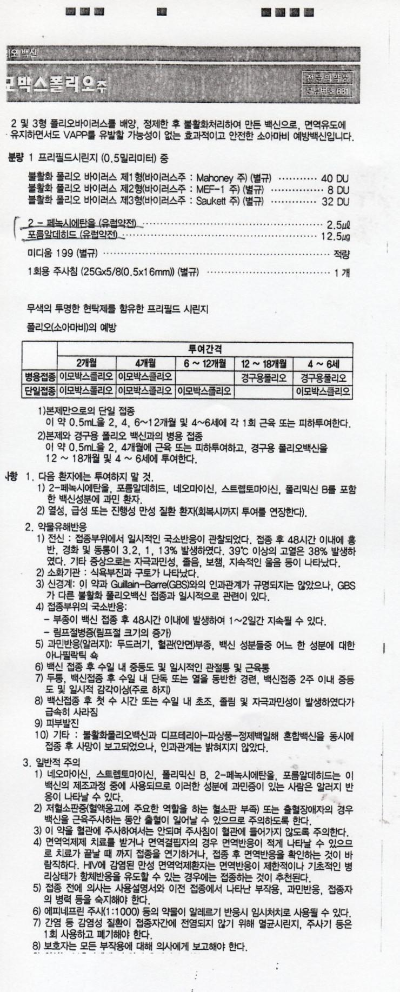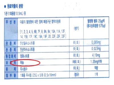 [예방접종 성분표]
