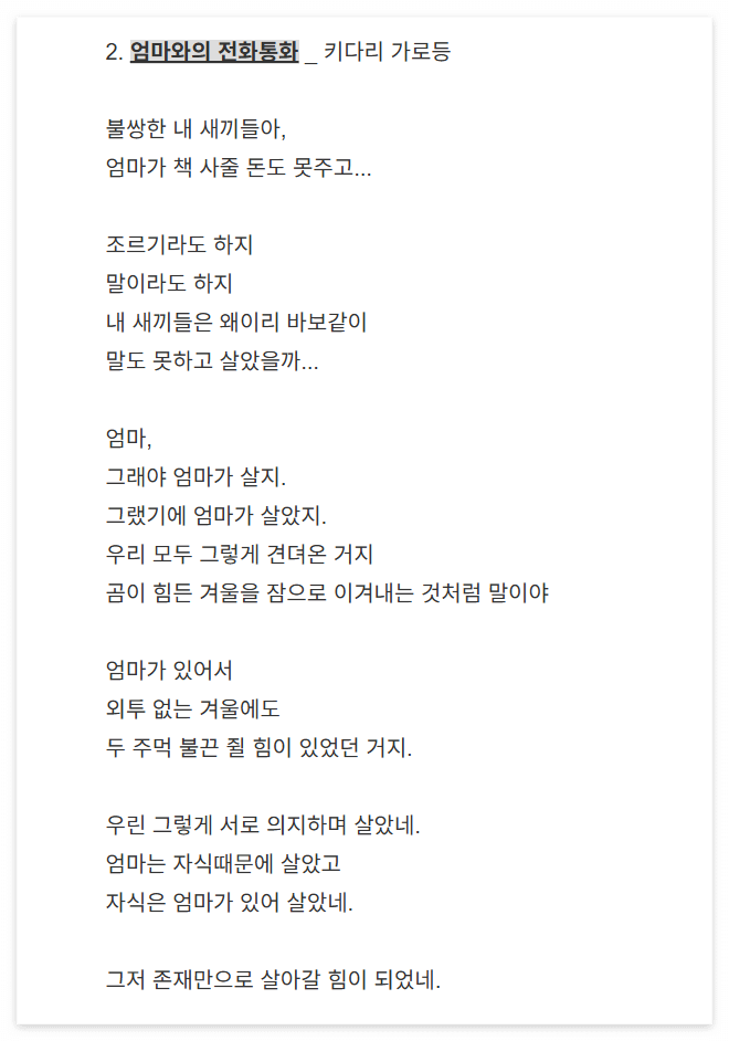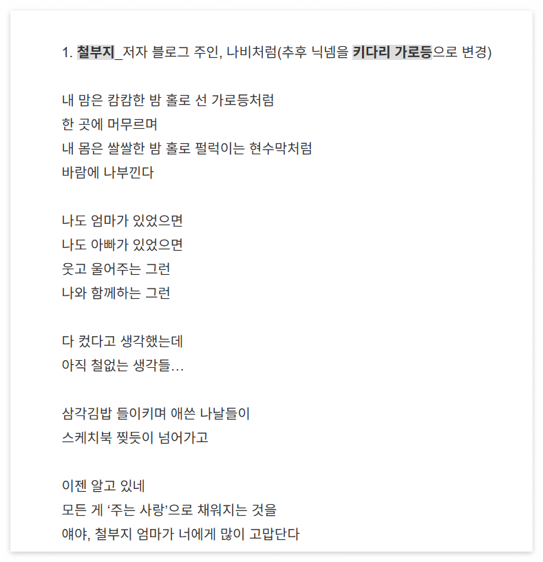블로그를 쓰면서 아주 가끔 마무리 부분에 덧붙였던 시를 모아봤어요.
