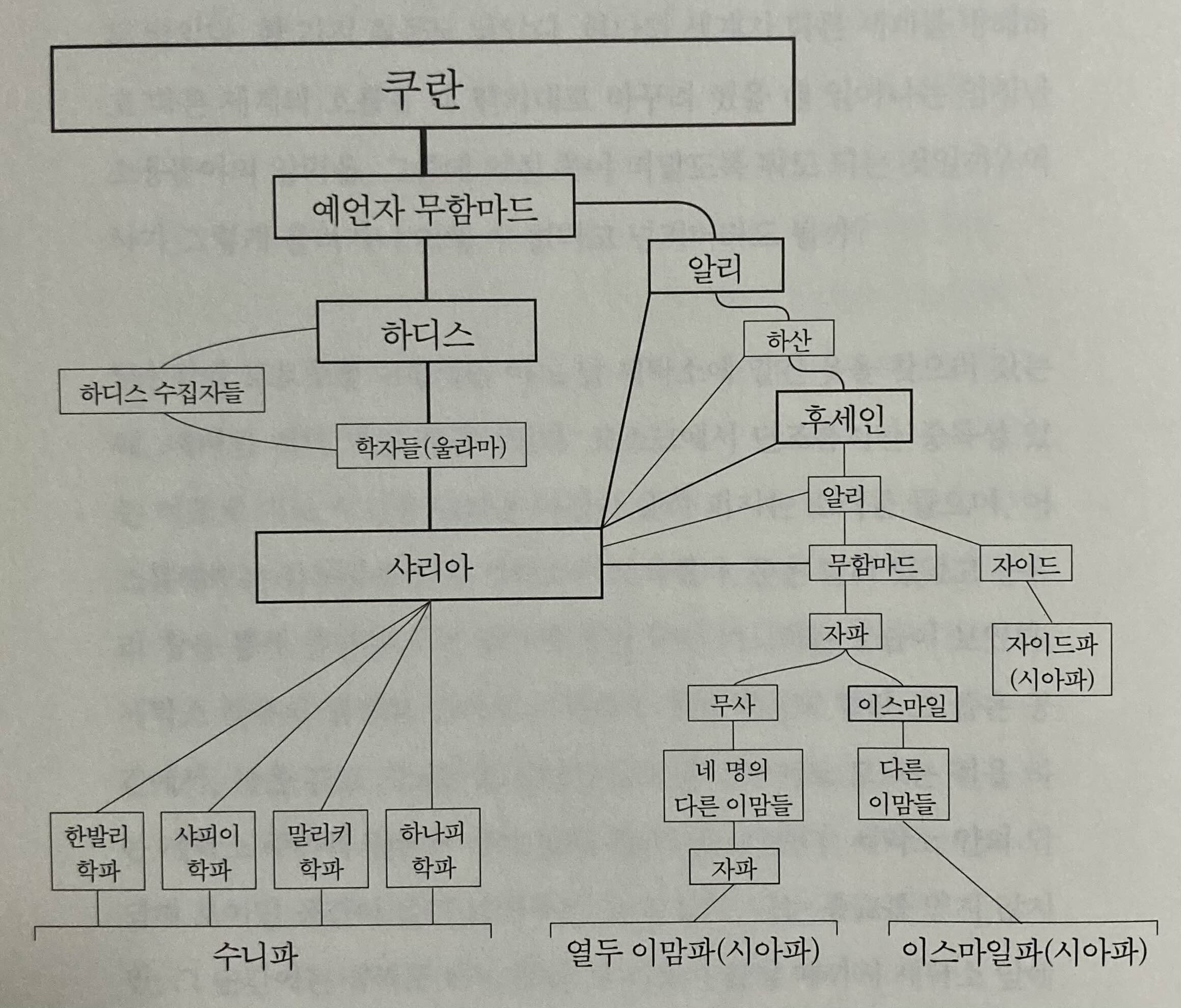 수니파와 시아파의 기본법규와 정신은 비슷하다. 세부사항이 약간 다르긴 해도 다른 부분을 단 5곳이라도 찾아낼 무슬림은 천명중에 한명도 안될 것이다. p173
