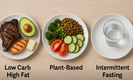 저탄고지, 케토제닉, 채식, 간헐적 단식, 유행식단의 공통점