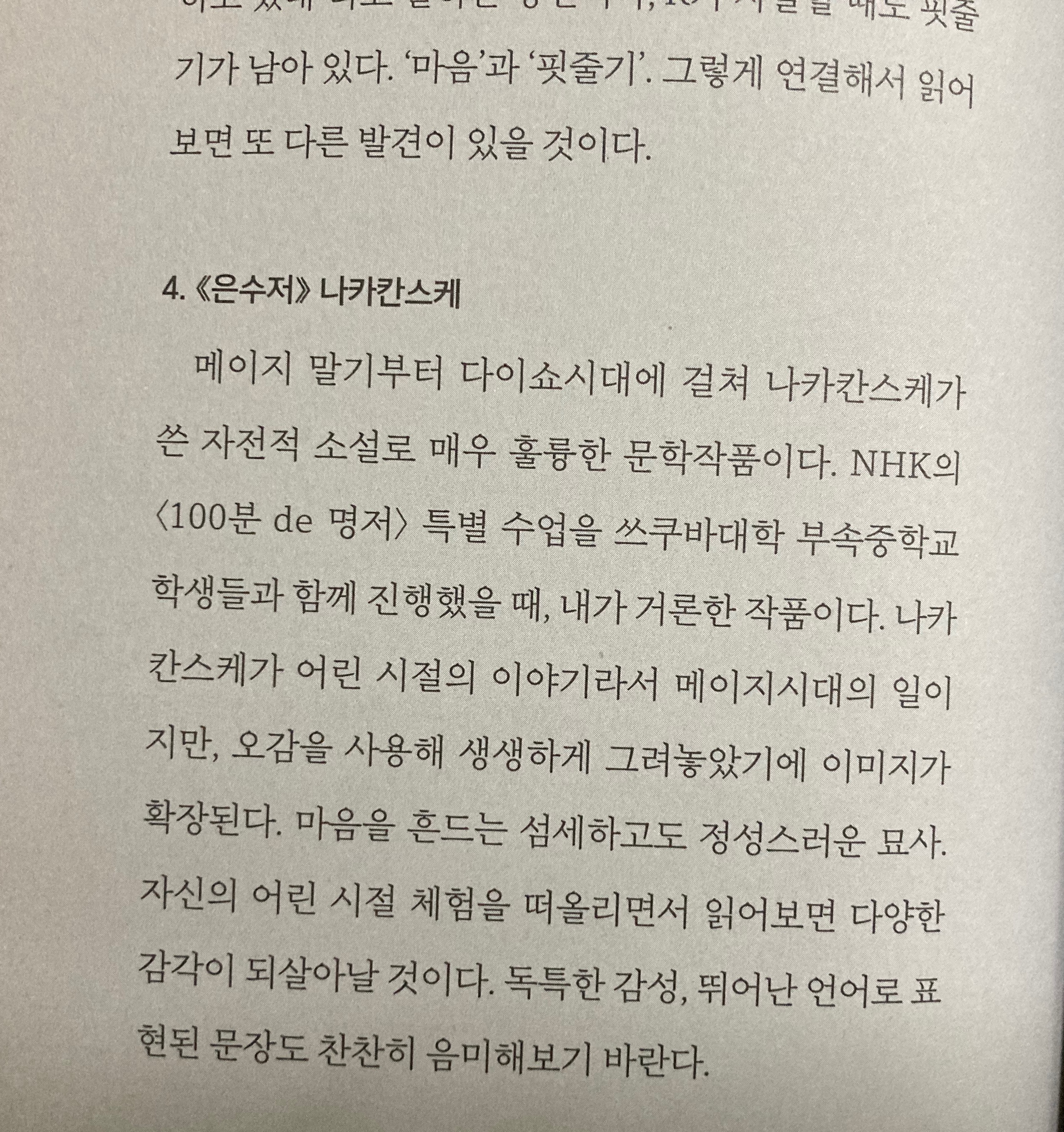 → 일류의 문학은 굉장한 힘이 존재한다. 소리 내어 읽으면 굉장한 박력을 가진 말이 몸으로 다가옴을 느낄 수 있다.