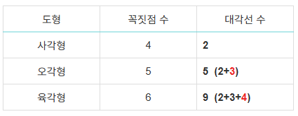 → 꼭짓점이 n개면 (n-3) x n 이 되는데,