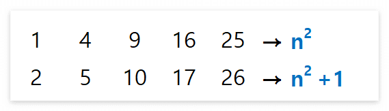- +3, +5, +7, +9 이렇게 홀수로 증가한다고 볼 수 있어요.