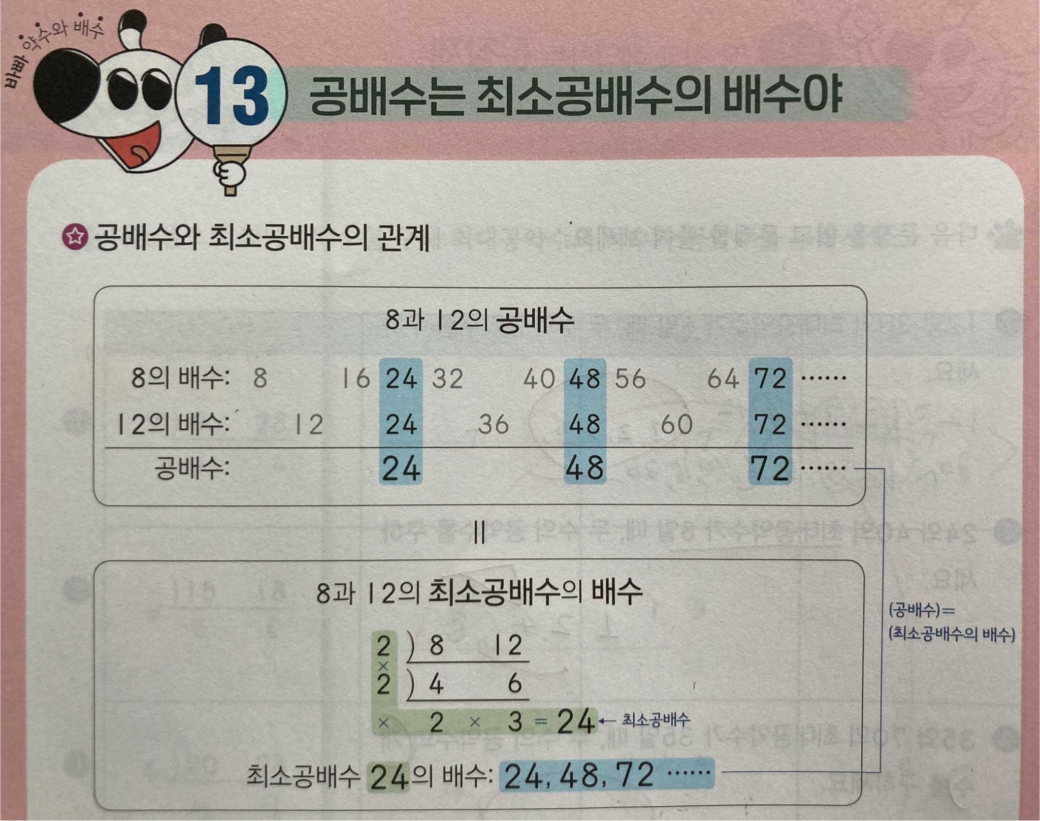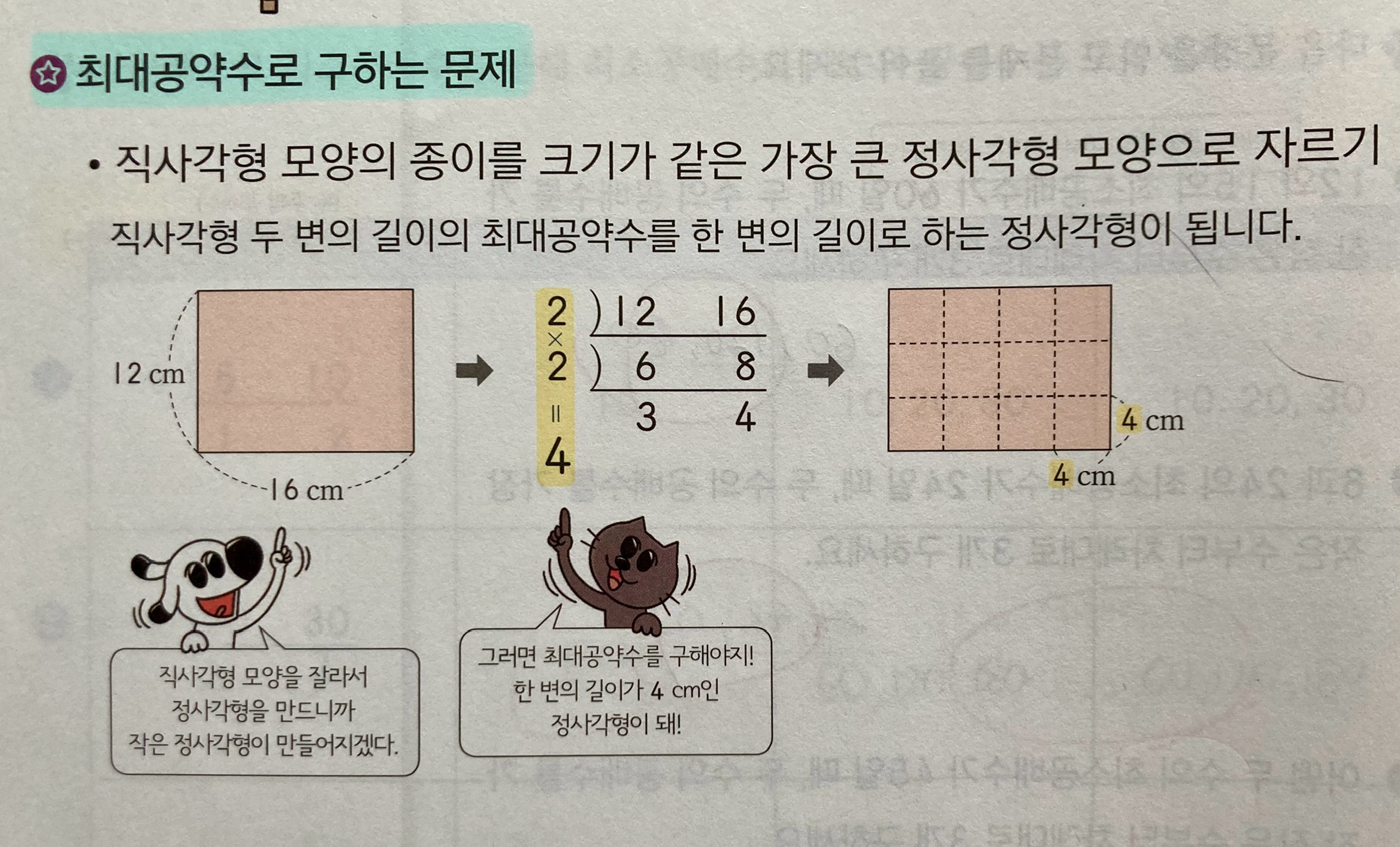 | 1. 큰수의 최대공약수 구하기 2. 세 수의 최소공배수 구하기 3. 실생활 문제, 문장제 문제 적용하기 4. 기타 특징 |