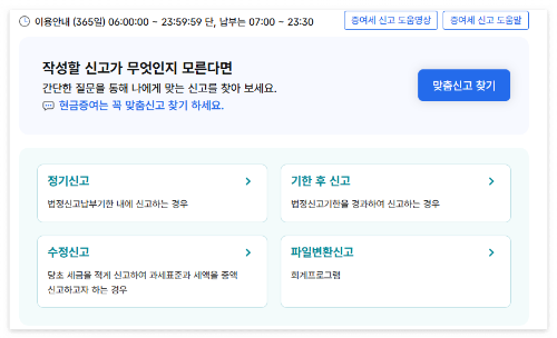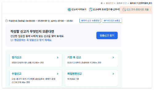- 그 기한이 넘었다면 → 기한 후 신고 클릭